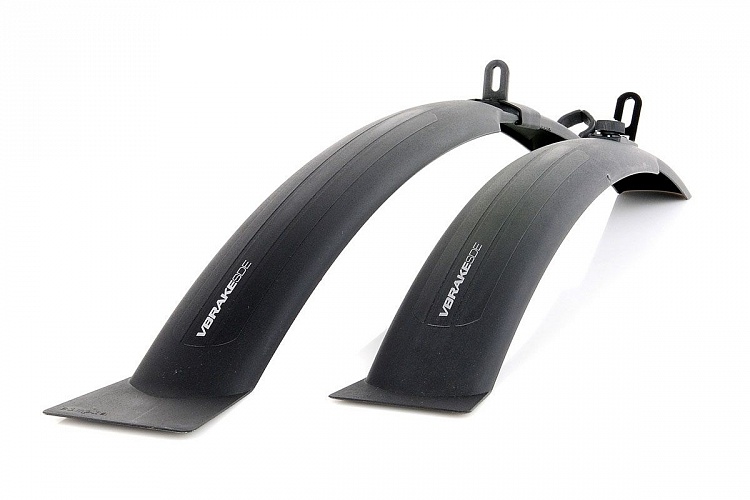 Комплект щитков SIMPLA VBRAKE SDE (чёрный) - набор щитков с современным дизайном подходит для колес 24 и 26 дюймов объёмом шины до 65 мм. Оптимизирован для установки с тормозами типа V-Brake. Задний щиток устанавливается с помощью специального адаптера из пластика, что даёт возможность регулировать крыло вертикально и горизонтально, а также быстро снимать и устанавливать его. Щиток имеет сужение в области тормозов, а также подвижное крепление к раме с каналом для троса переключения передач. Передний щиток имеет стальное крепление с пластиковой гайкой для быстрого снятия и установки.