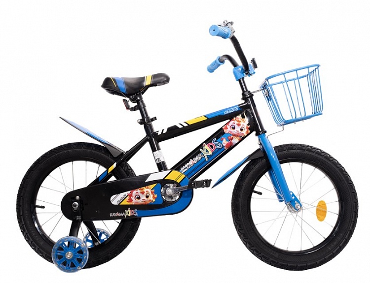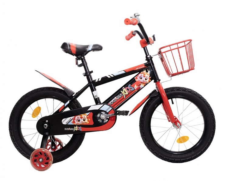 Детский велосипед KAYAMA KIDS DRAGON 16 предназначен для детей от 4 до 7 лет и ростом от 110 до 130 см. Он оснащён колёсами диаметром 16 дюймов и боковыми колёсами для устойчивости.