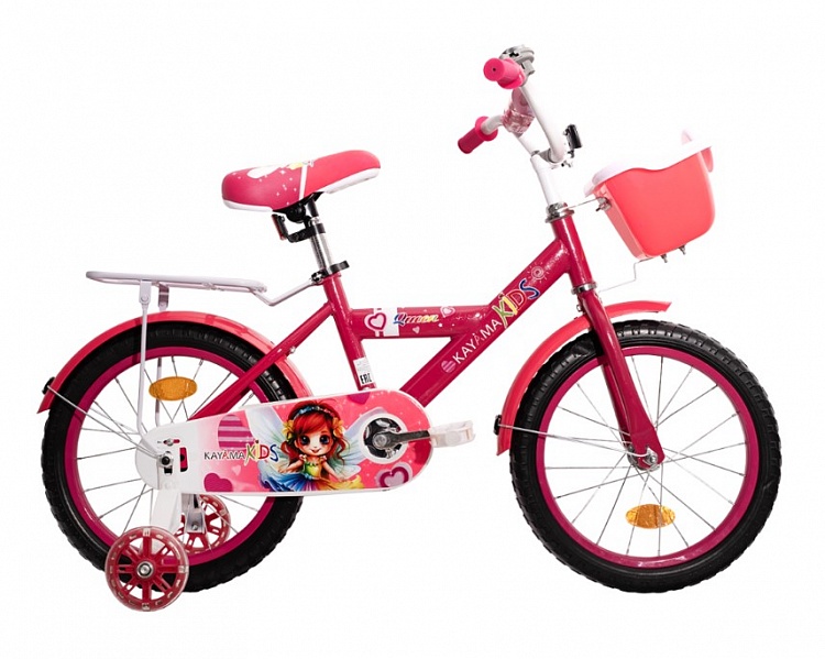 Детский велосипед KAYAMA KIDS QUEEN 16" предназначен для детей от 4 до 6 лет. Он оснащён колёсами диаметром 16 дюймов и боковыми колёсами для устойчивости.