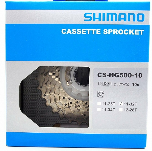 Кассета Shimano CS-HG500 на 10 скоростей для велосипеда с технологией Hyperglide для плавных переключений. Хорошая износоустойчивость. Мягкая и бесшумная работа под нагрузкой
